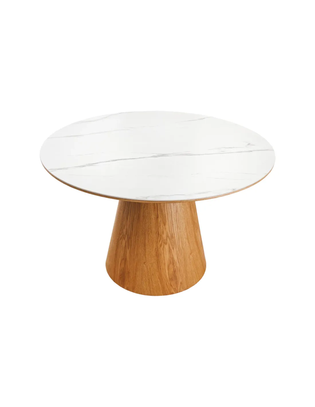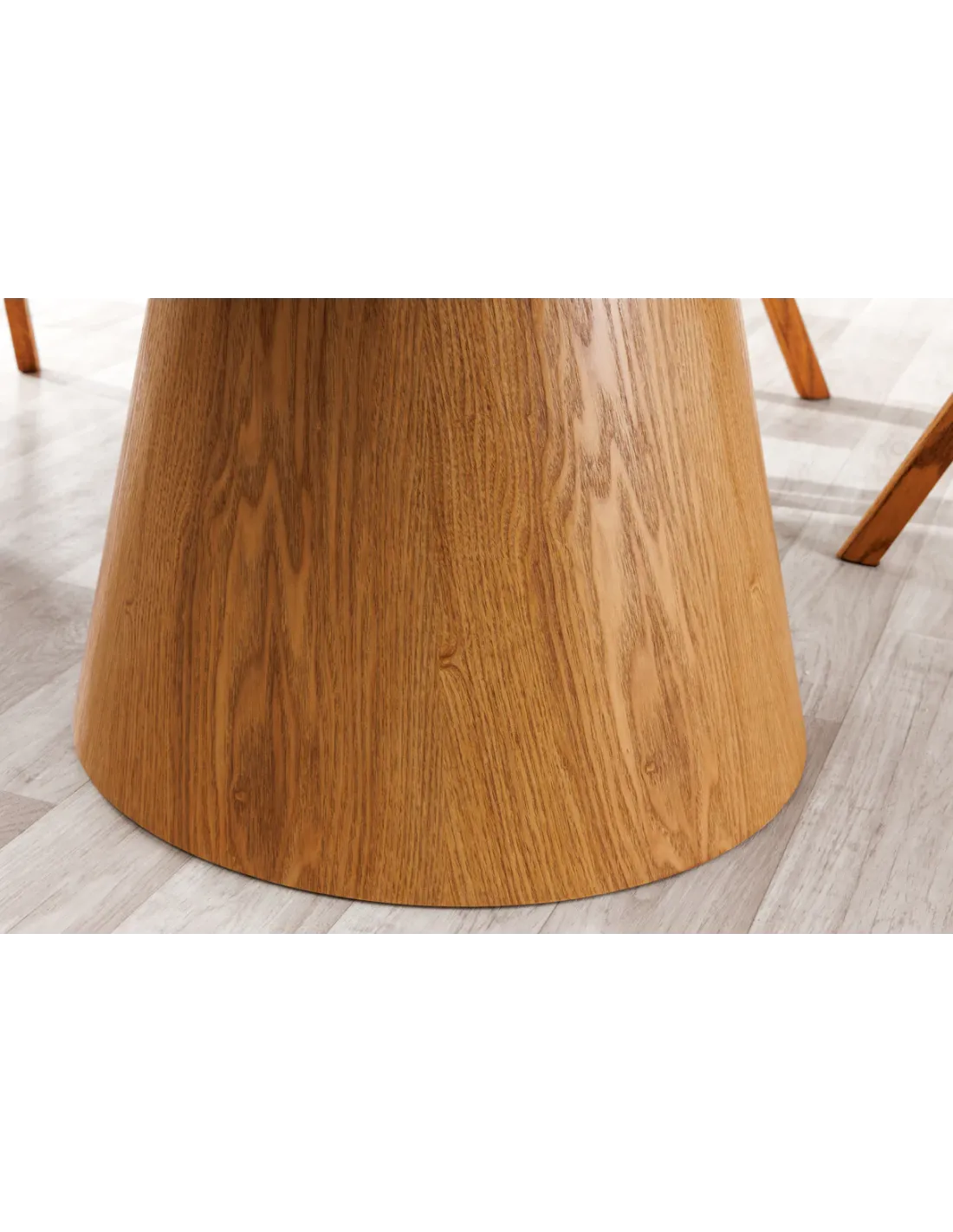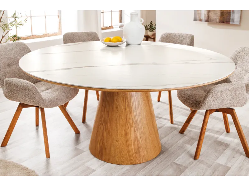 Sa forme ronde de 120 cm permet d’accueillir confortablement 4 à 6 personnes, favorisant la convivialité et le partage autour des repas. Son design épuré lui permet de s’intégrer facilement dans différents styles d’intérieurs.