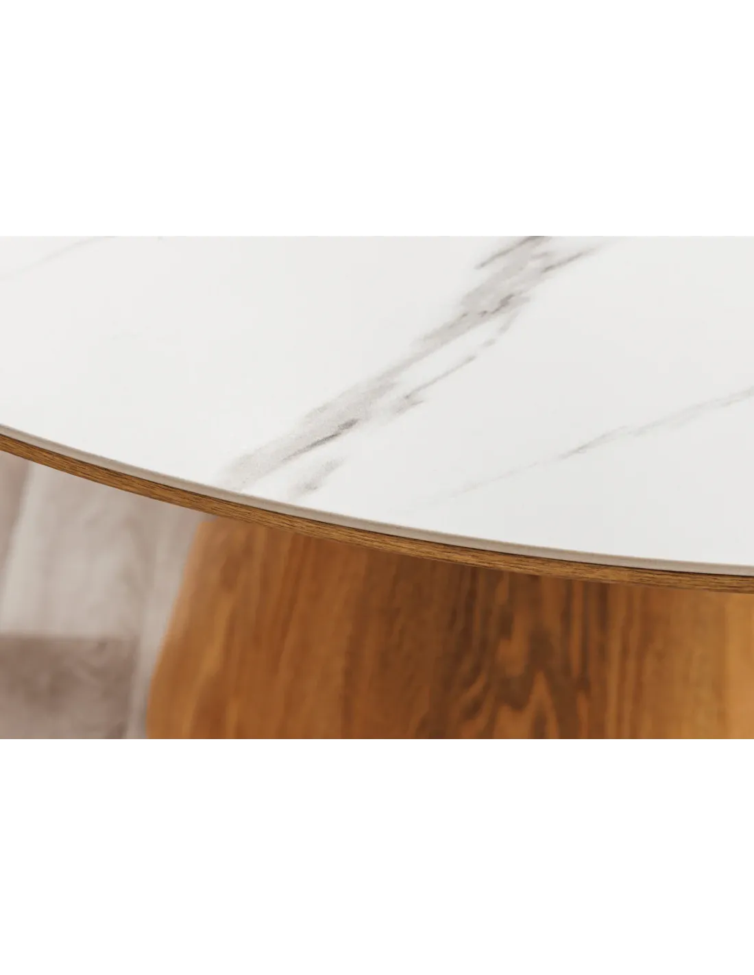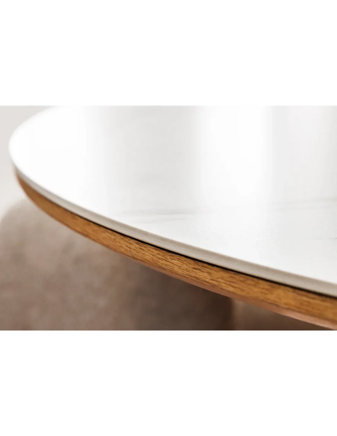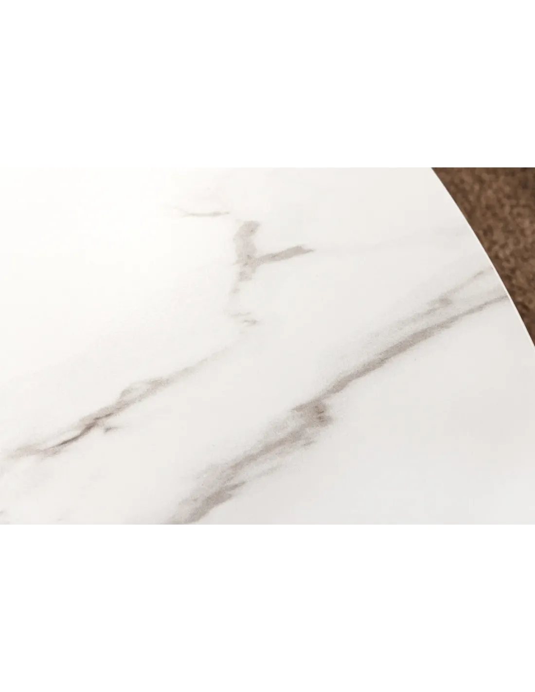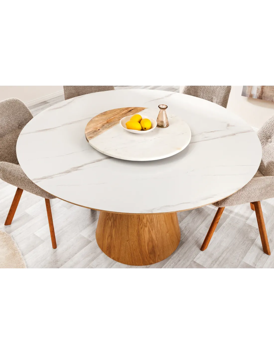 Plateau rond en céramique effet marbre blanc : élégant, lumineux et résistant aux rayures.