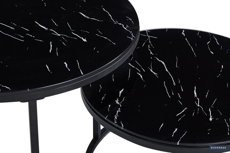 TABLE BASSE 'BOSTON' DÉCOR VERRE MARBRE NOIR