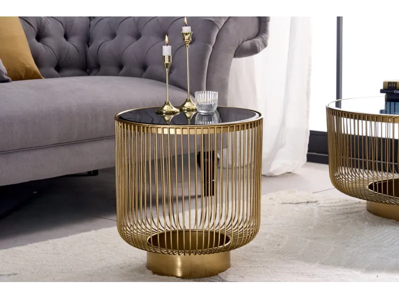 Avec ses finitions dorées luxueuses et son plateau en verre noir élégant, cette table basse VARIATION ajoute une touche de glamour à tout espace. Ses dimensions compactes et son design unique en font un choix idéal pour un intérieur stylé et pratique.
