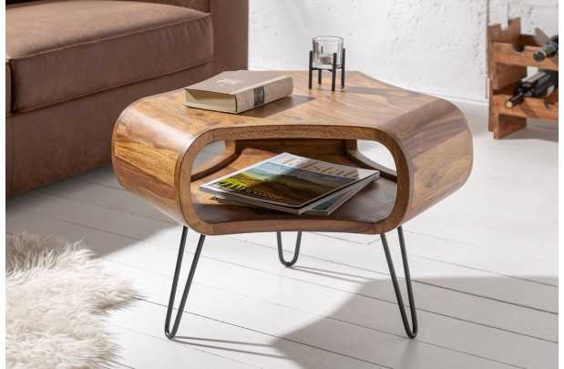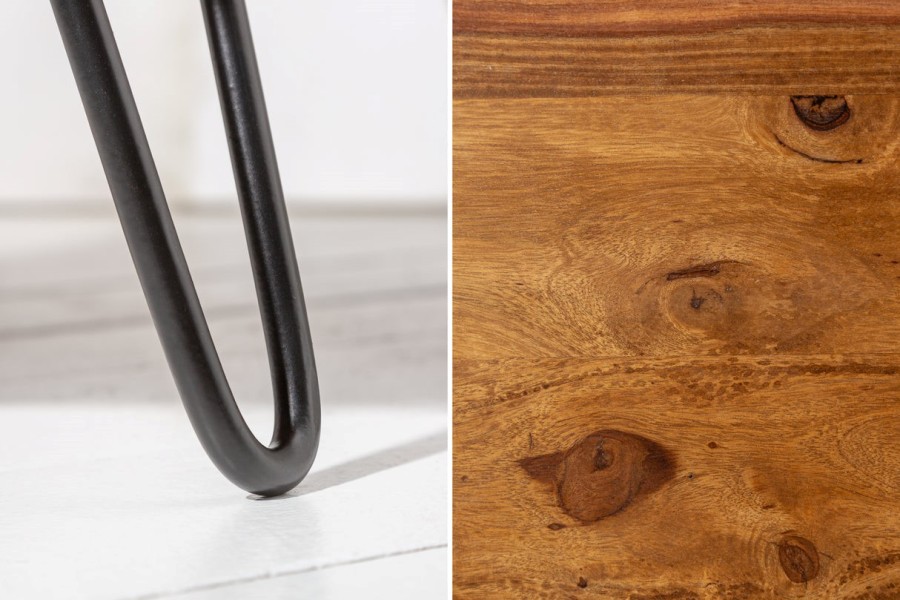 - Plateau et structure : Fabriqués en bois de sheesham naturel, connu pour sa solidité et son veinage unique.