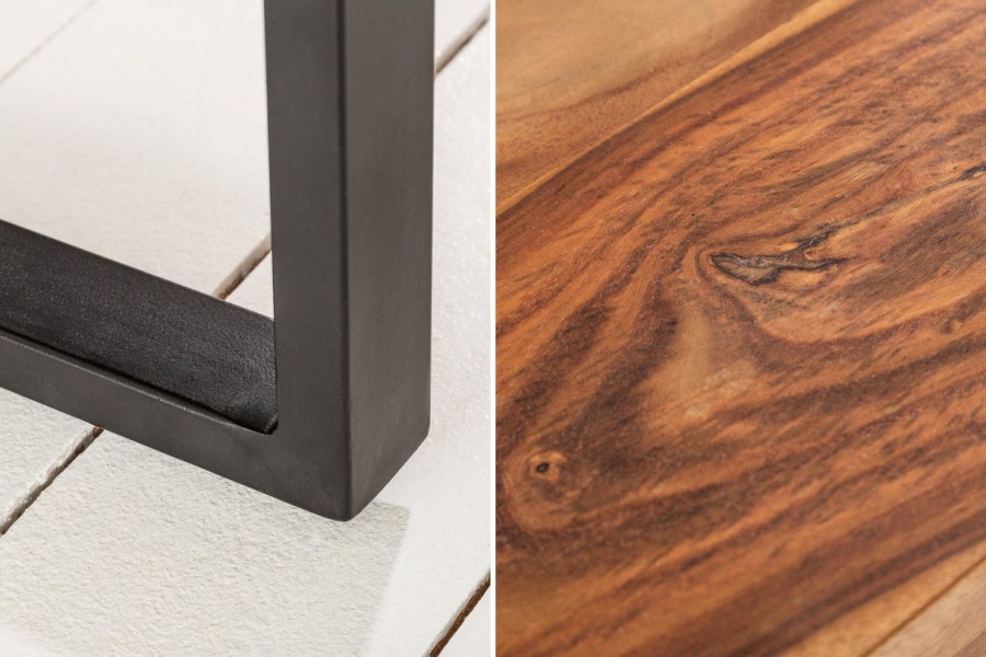 - Plateau en bois de sheesham massif : Doté d’une finition vernie, le bois est sublimé et protégé, révélant ses nuances chaleureuses et sa texture unique.
