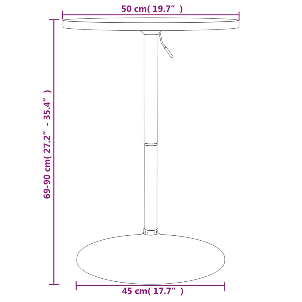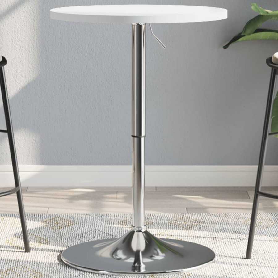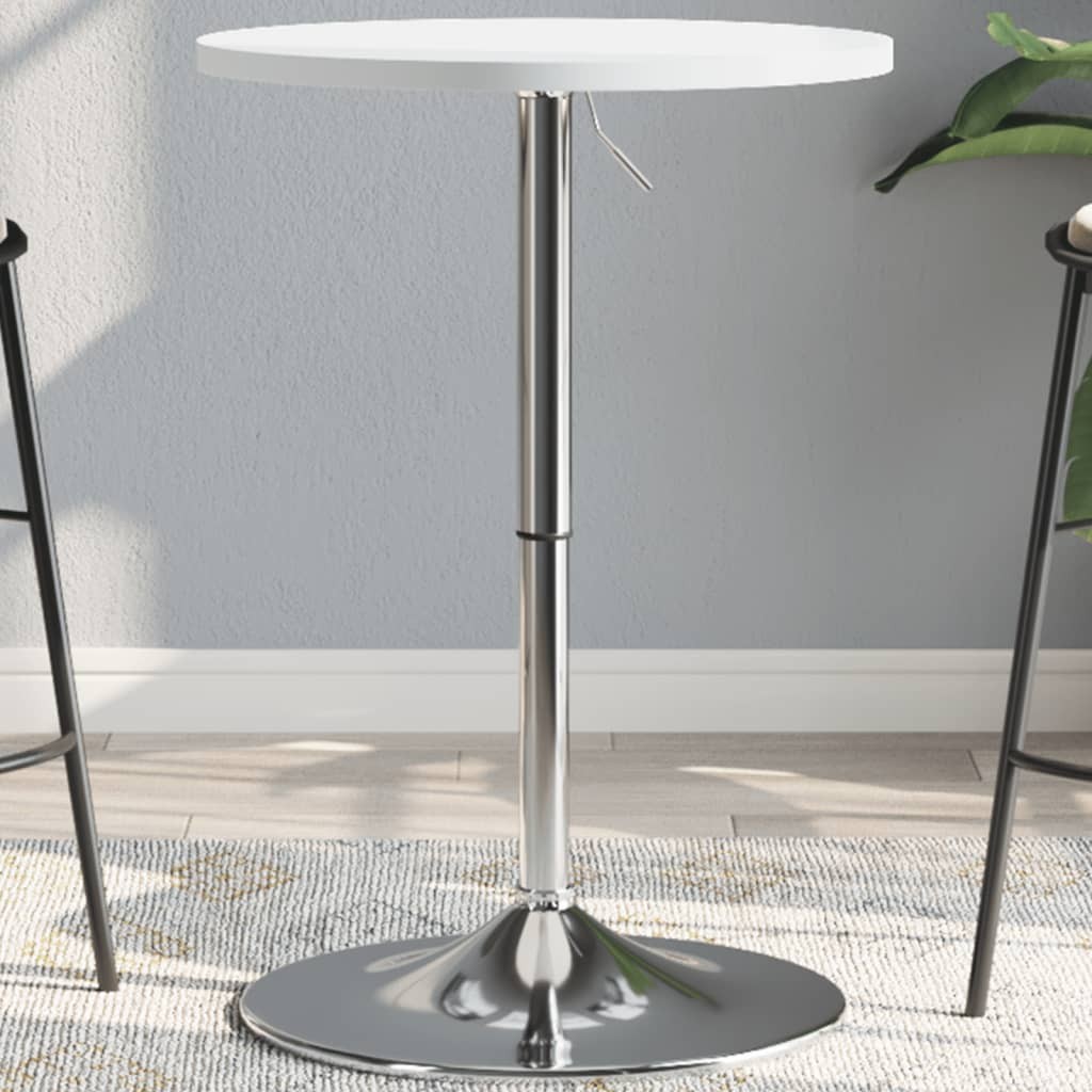 Cette table de bar à la mode, au design élégant et intemporel, s'adapte parfaitement à votre décoration intérieure. Cadre durable : la base en acier chromé offre une grande robustesse et une stabilité accrue.Dessus stable et facile à nettoyer : cette table de bar a un dessus en bois d'ingénierie de haute qualité qui est robuste, durable et facile à nettoyer avec un chiffon humide.Fonction réglable : grâce au mécanisme de levage à gaz, la table de bar peut être réglée en hauteur et constitue un supplément parfait à tout bar fonctionnel ou espace de salle à manger.