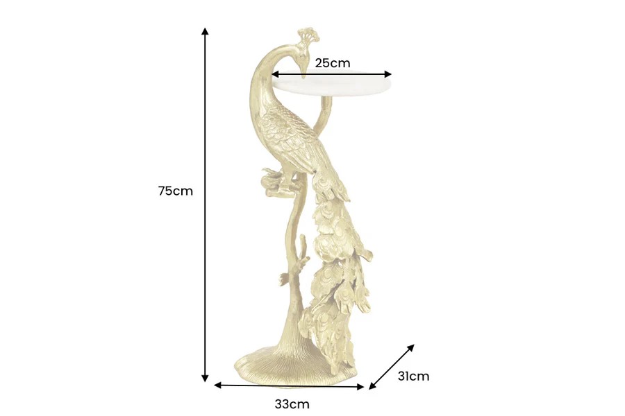 La table d’appoint WILDLIFE PEACOCK 75 cm incarne le luxe et l’artisanat d’exception. Avec son design sculptural et sa finition dorée, elle s’impose comme une pièce incontournable pour les amateurs de décoration sophistiquée. Offrez à votre intérieur un meuble à la fois fonctionnel et artistique.