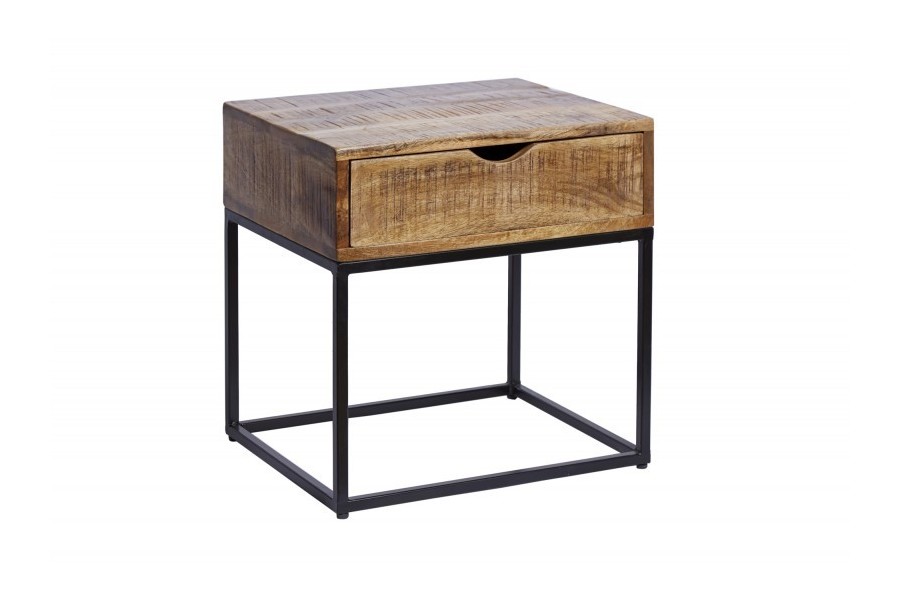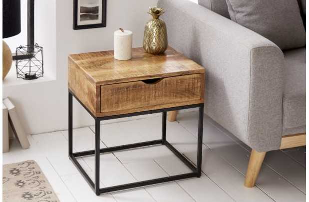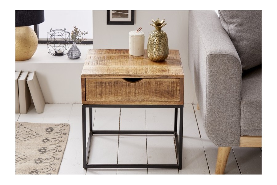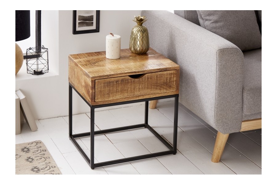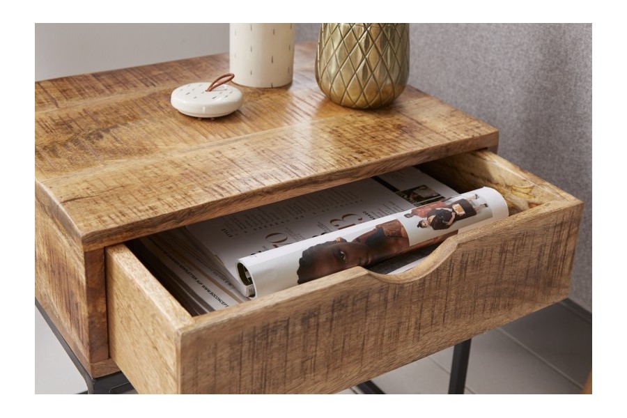 Table de chevet de couleur naturelle et de style industriel moderne ajoute à votre chambre une ambiance aimable, idéal pour installer une lampe de table ou une tasse de café. Fabriquée de meubles placage avec du bois de mangue naturel. La couleur naturelle et le style industriel moderne ajoute a votre chambre une ambiance aimable, idéal pour installer une lampe de table ou une tasse de café. À son tour, un tiroir pratique pour ranger de petites bagatelles, vous permettant de contrôler le désordre.