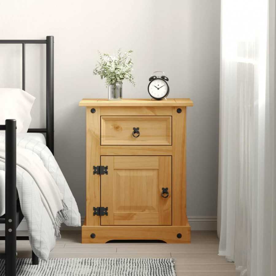 Cette table de chevet en bois de haute qualité est un meuble dans le style mexicain « Corona ». Le pin ciré avec des détails en métal noir dégage un charme mexicain rustique qui fera de la table de chevet un excellent supplément à votre chambre à coucher, chambre d’amis ou dortoir. Elle peut également être utilisée comme armoire latérale, table d'appoint, etc. Fabriquée à partir de bois de pin massif, la table de chevet est solide et robuste. Elle dispose d’un tiroir pour les petits objets que vous aimez garder à portée de main et d’un placard avec porte en dessous qui est idéal pour ranger des livres et des magazines. Le dessus de l'armoire est assez robuste et assez grand pour contenir une lampe de chevet, un réveil ou tout ce dont vous pourriez avoir besoin à côté de votre lit. L'assemblage est vraiment facile.