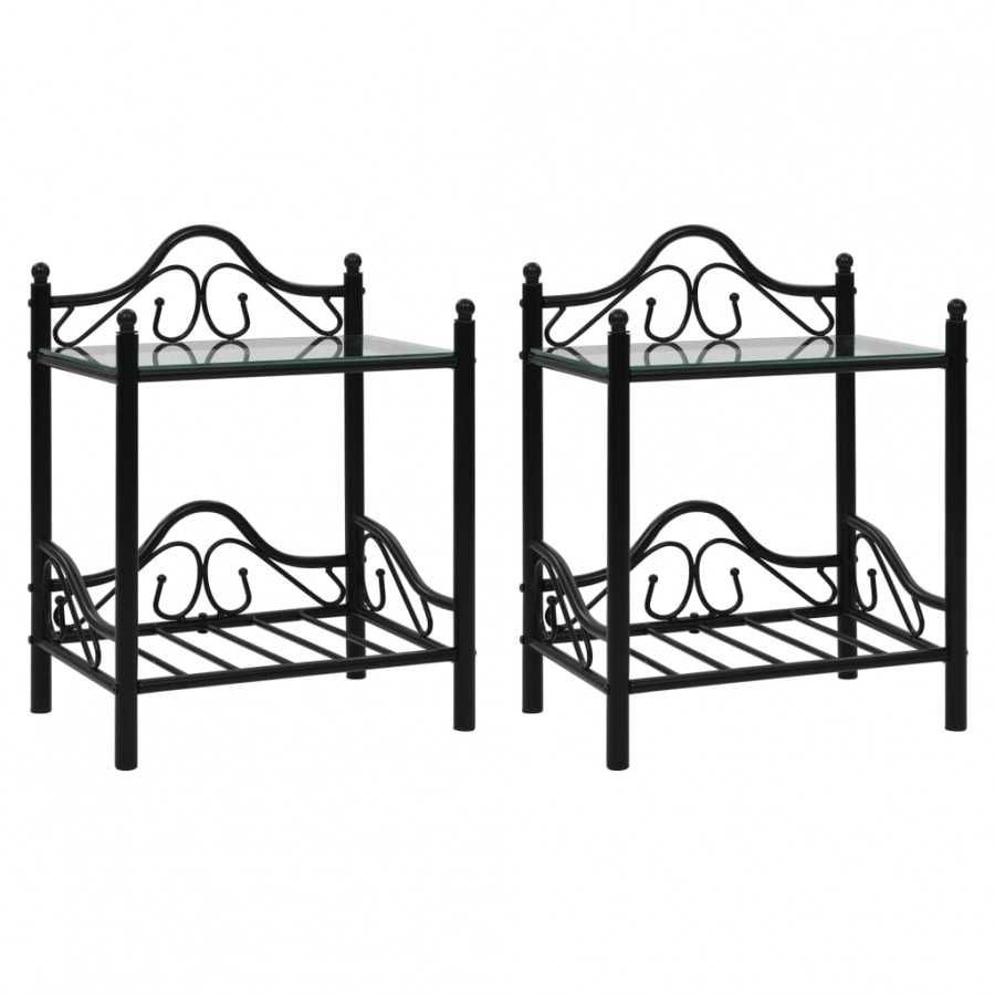 L'ensemble de tables de chevet ajoutera une touche intemporelle à votre décoration intérieure. Cet ensemble de tables de chevet comprend des cadres en acier robustes et des panneaux en verre trempé. Il est stable et durable. Chaque table est dotée de 2 étagères idéales pour placer divers petits objets. Les structures en acier incurvées contribuent au style élégant de la table de chevet. L'ensemble est facile à assembler. La livraison inclut 2 tables de chevet.