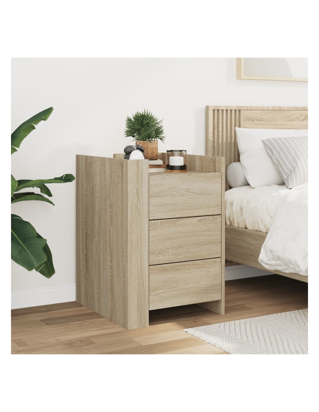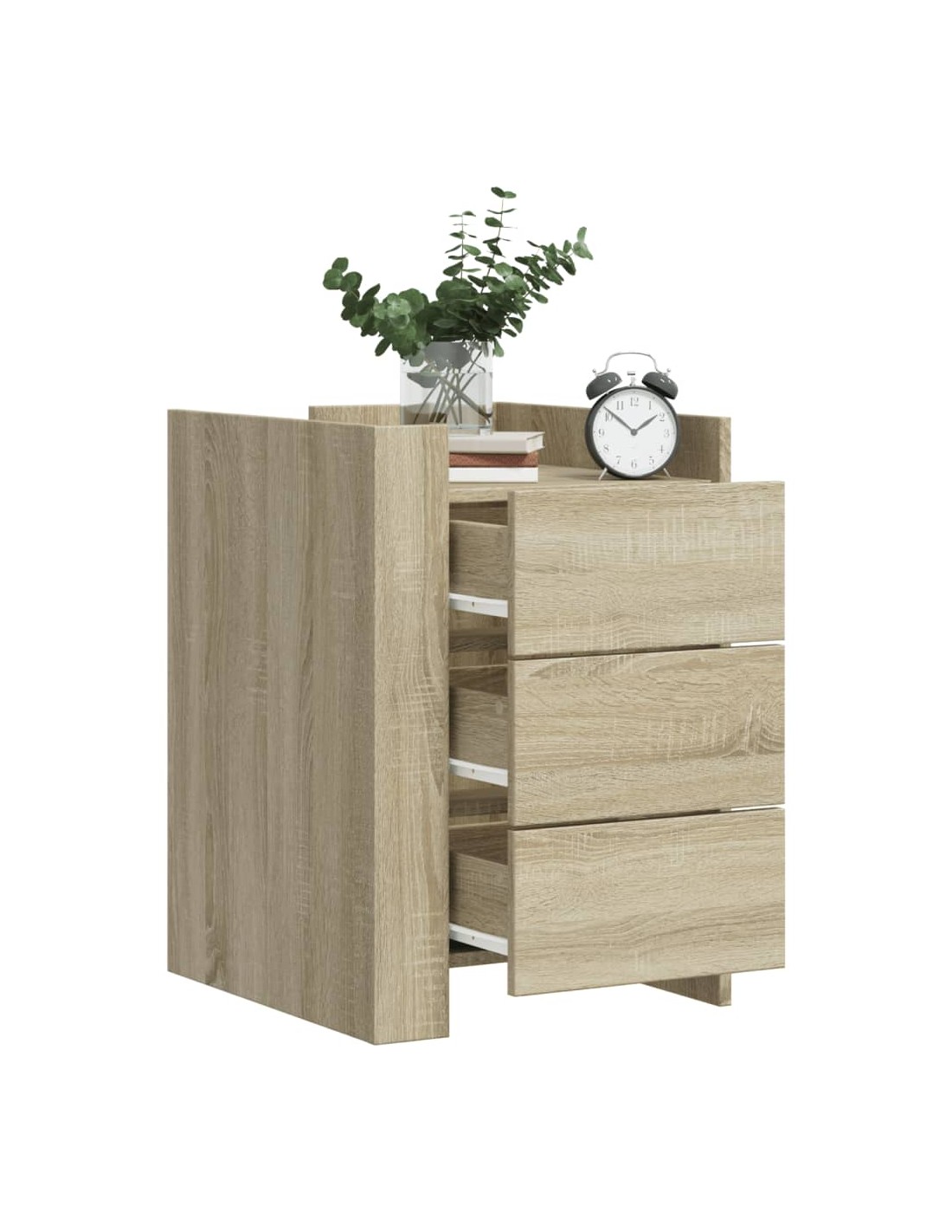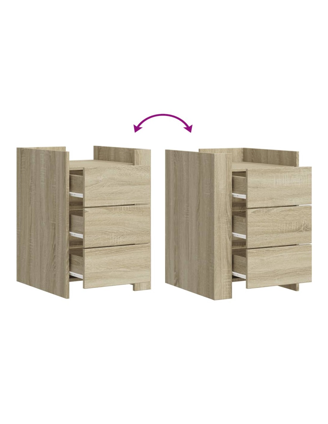 D'un design élégant, cette table de chevet s'intègre facilement dans votre chambre ou votre salon et ajoute un charme intemporel à votre intérieur. Cadre robuste et stable : le bois d'ingénierie est d'une qualité exceptionnelle avec une surface lisse et présente également résistance, stabilité et résistance à l'humidité.Grand espace de rangement : la table de chevet comporte trois tiroirs pratiques qui vous permettent de garder vos objets essentiels à portée de main.Facile à nettoyer : cette table de chevet est résistante à l'humidité et facile à nettoyer pour qu'elle garde son aspect neuf tous les jours.Dessus de table stable et robuste : le dessus de la table de chevet est parfait pour afficher vos objets décoratifs, cadres photo et plantes en pot.Deux modes d'assemblage : vous pouvez installer les deux panneaux d'angle sur le même côté ou sur des côtés opposés, en positionnant les déflecteurs à l'avant ou l'un à l'avant et l'autre à l'arrière. Attention :Pour éviter qu'il ne bascule, ce produit doit être utilisé avec le dispositif de fixation murale fourni.
