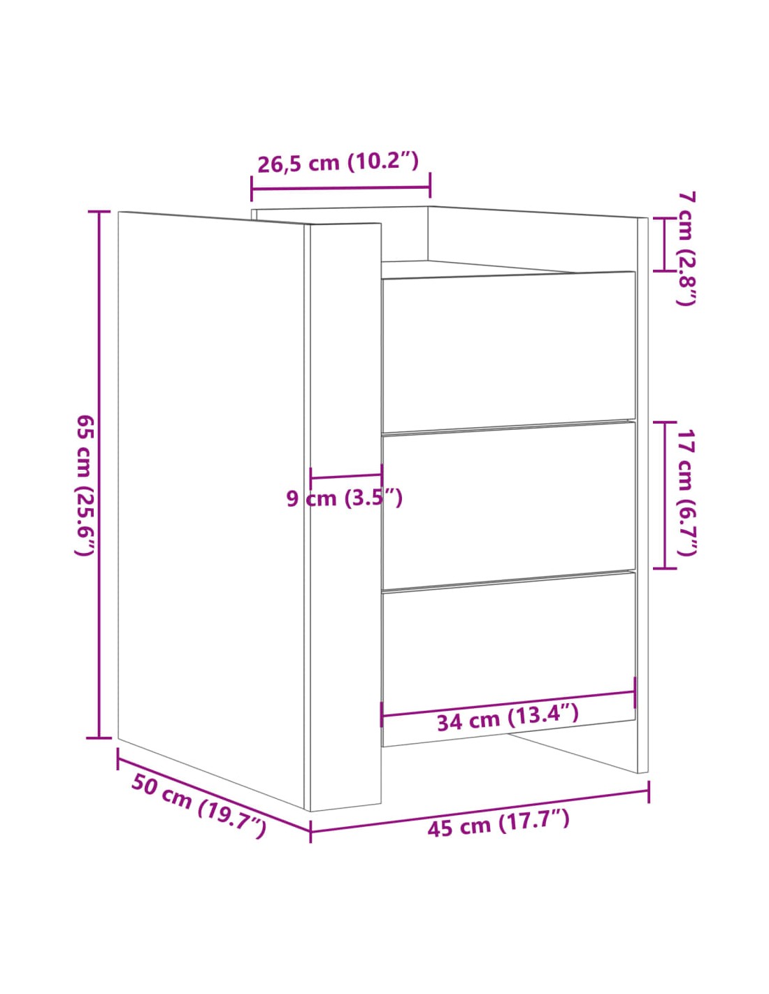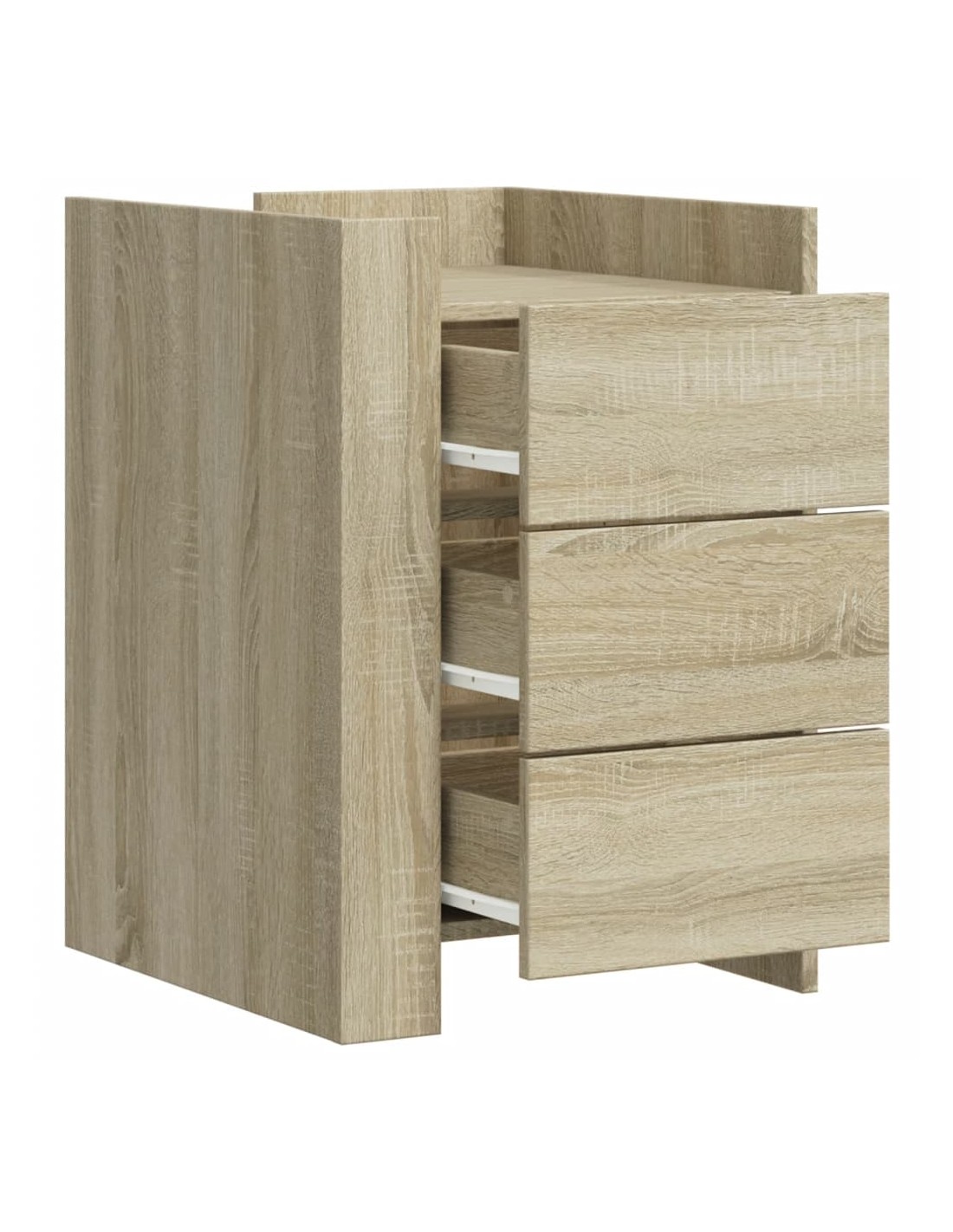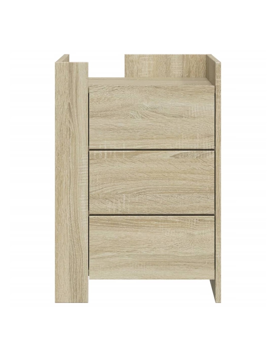 D'un design élégant, cette table de chevet s'intègre facilement dans votre chambre ou votre salon et ajoute un charme intemporel à votre intérieur. Cadre robuste et stable : le bois d'ingénierie est d'une qualité exceptionnelle avec une surface lisse et présente également résistance, stabilité et résistance à l'humidité.Grand espace de rangement : la table de chevet comporte trois tiroirs pratiques qui vous permettent de garder vos objets essentiels à portée de main.Facile à nettoyer : cette table de chevet est résistante à l'humidité et facile à nettoyer pour qu'elle garde son aspect neuf tous les jours.Dessus de table stable et robuste : le dessus de la table de chevet est parfait pour afficher vos objets décoratifs, cadres photo et plantes en pot.Deux modes d'assemblage : vous pouvez installer les deux panneaux d'angle sur le même côté ou sur des côtés opposés, en positionnant les déflecteurs à l'avant ou l'un à l'avant et l'autre à l'arrière. Attention :Pour éviter qu'il ne bascule, ce produit doit être utilisé avec le dispositif de fixation murale fourni.
