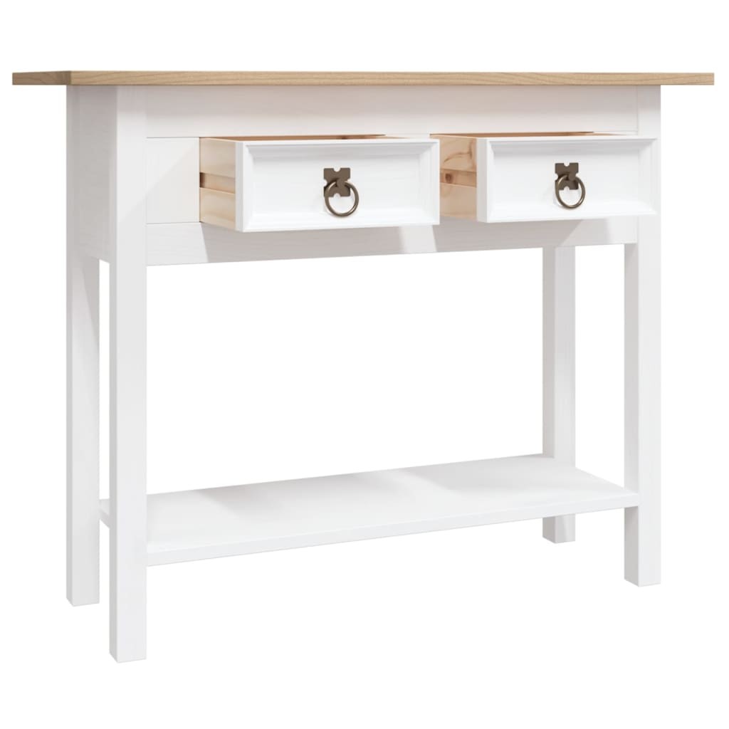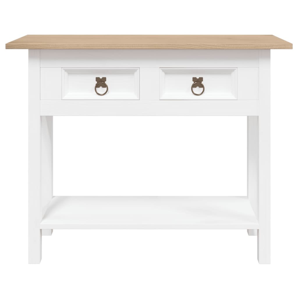 Cette table console de style Corona dégage un charme mexicain rustique qui en fera un supplément intemporel à votre salon ou à votre couloir. Cette table console rustique est fabriquée à partir de bois de pin de haute qualité, ce qui la rend résistante à l'usure. La table en bois robuste nécessite un entretien minimal, et les beaux grains de bois lui confèrent un charme rustique. La table a un dessus robuste, sur lequel vous pouvez placer votre téléviseur ou une lampe, de la nourriture et des boissons, ou des objets décoratifs tels que des cadres photo, des corbeilles de fruits ou des vases. Elle comprend 2 tiroirs et 1 étagère, offrant amplement d'espace pour ranger et organiser des livres, des magazines et d'autres articles. Grâce aux poignées pratiques, vous pouvez facilement ouvrir les tiroirs.