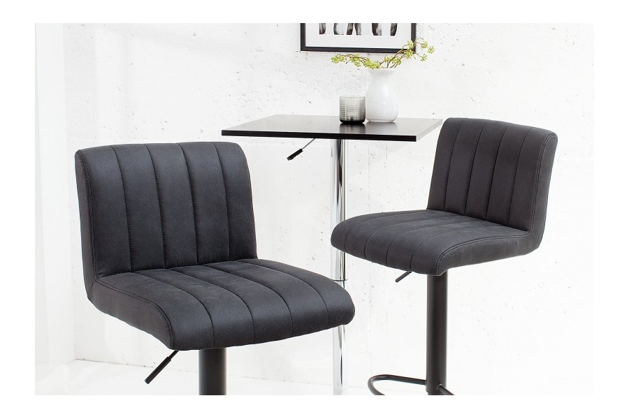 Un tabouret de bar de style tendance sublimera à merveille votre séjour ! Son assise est rembourrée avec une mousse polyester de meilleure qualité, revêtue joliment en microfibre douce de couleur gris vintage avec piétement central, il saura offrir un effet chic et luxueux à la pièce ! Très pratique, il est réglable en hauteur selon votre choix, et dispose d'un repos-pied pour un confort total ! Excellent autour de votre table de bar ou votre comptoir de cuisine, tout en bénéficiant d'un rapport qualité/prix exceptionnel !