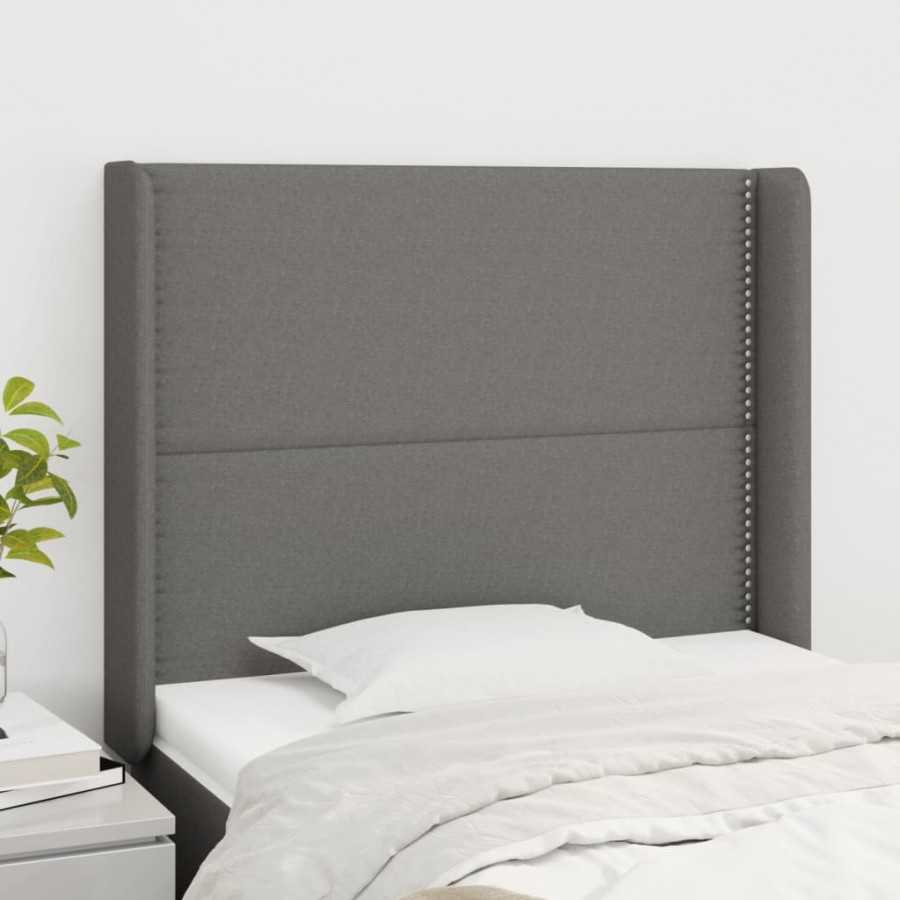 Tête de lit avec oreilles Gris foncé 103x16x118/128 cm Tissu