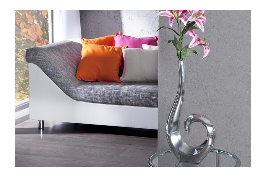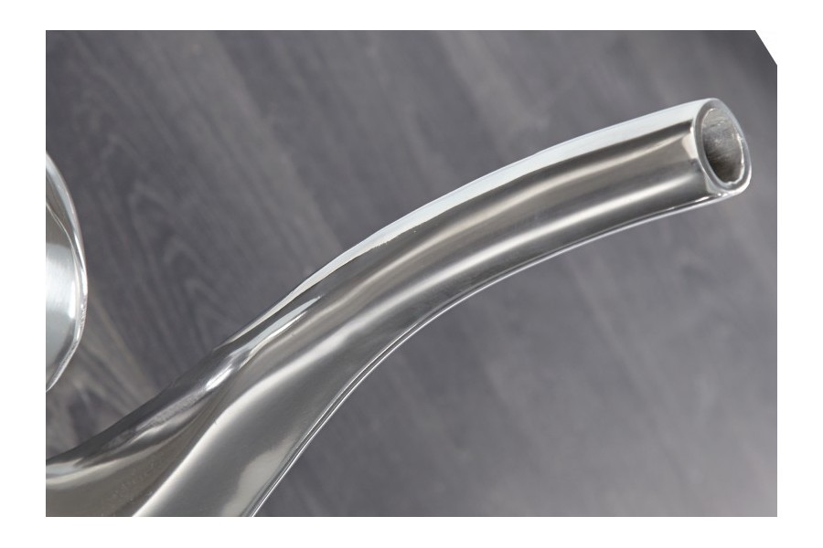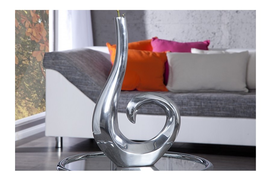 Superbe vase design de 49 cm idéal en forme de boucle, sa fabrication est faite en aluminium, coloris argent. D'un joli décor avec ou sans fleurs, il apportera un style atypique à la place où vous le mettiez.